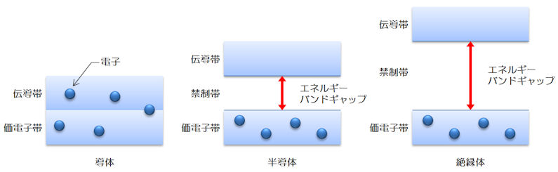 導体、半導体・絶縁体のエネルギーバンドギャップ